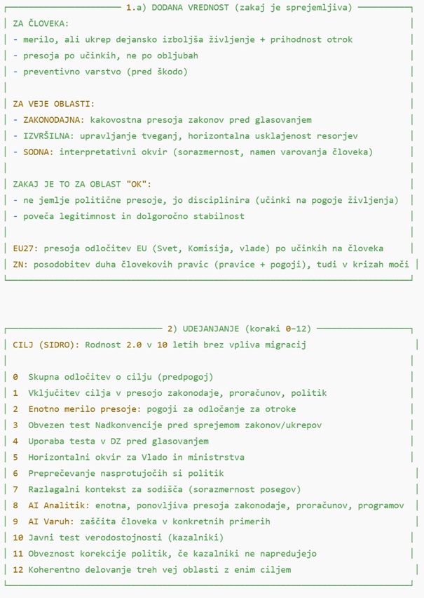 - Operativni koraki udejanjanja Nadkonvencije - (test skupne zaveze cilju: Rodnost 2.0 v 10 letih brez vpliva migracij). Potrebni koraki (0=predpogoj):