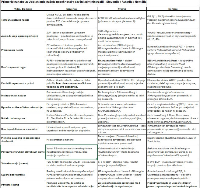 Primerjalna tabela: Udejanjanje načela uspešnosti v davčni administraciji – Slovenija / Avstrija / Nemčija