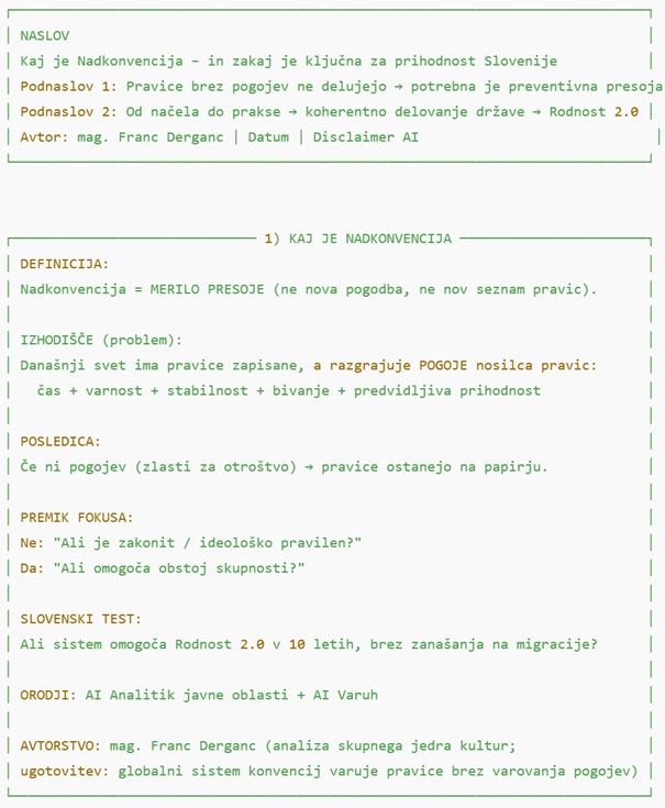 Prav zato Nadkonvencija potrebuje dve orodji: AI Analitik javne oblasti (za sistemsko presojo zakonodaje, proračunov in programov) in AI Varuh (za zaščito človeka v konkretnih primerih).
