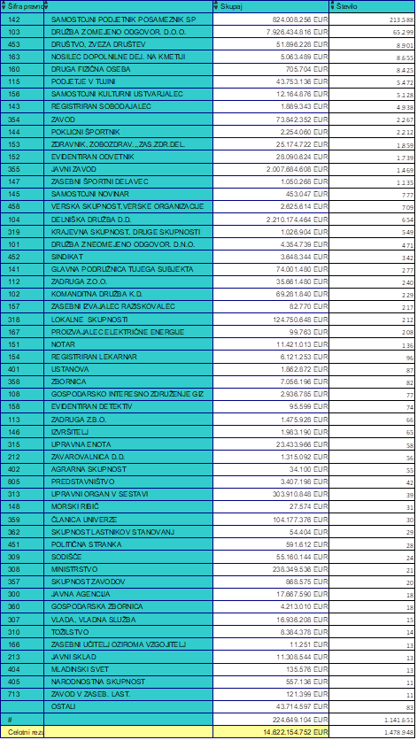 V Sloveniji prispevajo plačniki davkov (ocena za leto 2019) okoli 20 mrd EUR javnih dajatev:
